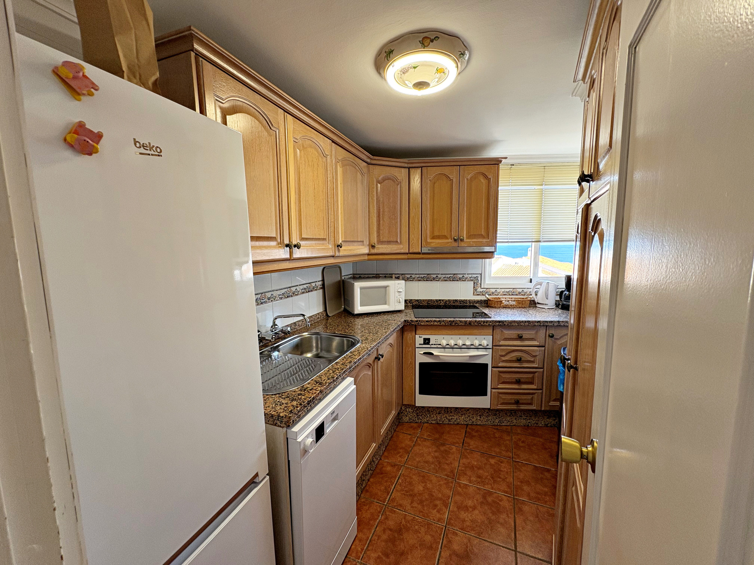 Además, el apartamento cuenta con una cocina independiente completamente equipada, con microondas, lavavajillas, horno, frigorífico y vitrocerámica.