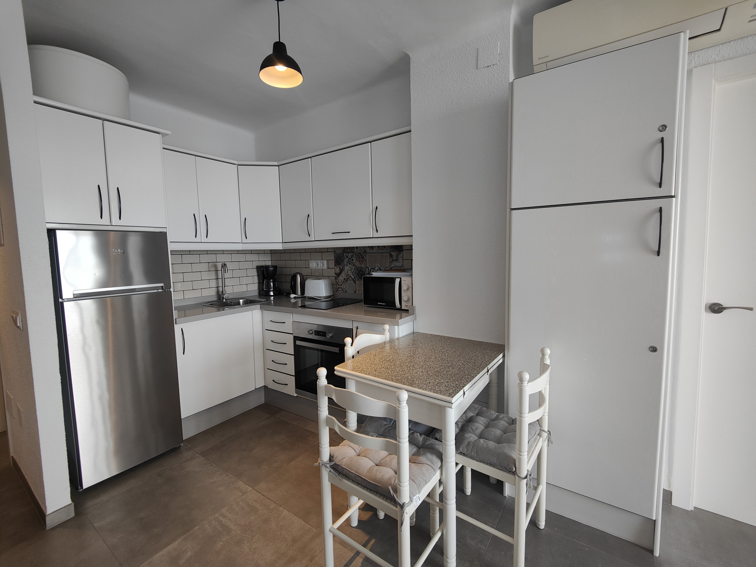 Inside, you’ll also find a bright and comfortable living room with TV offering both Spanish and international channels, a renovated bathroom with a modern shower, and an open-plan kitchen fully equipped with fridge-freezer, oven, microwave, ceramic hob, kettle, and all necessary crockery and cooking utensils.