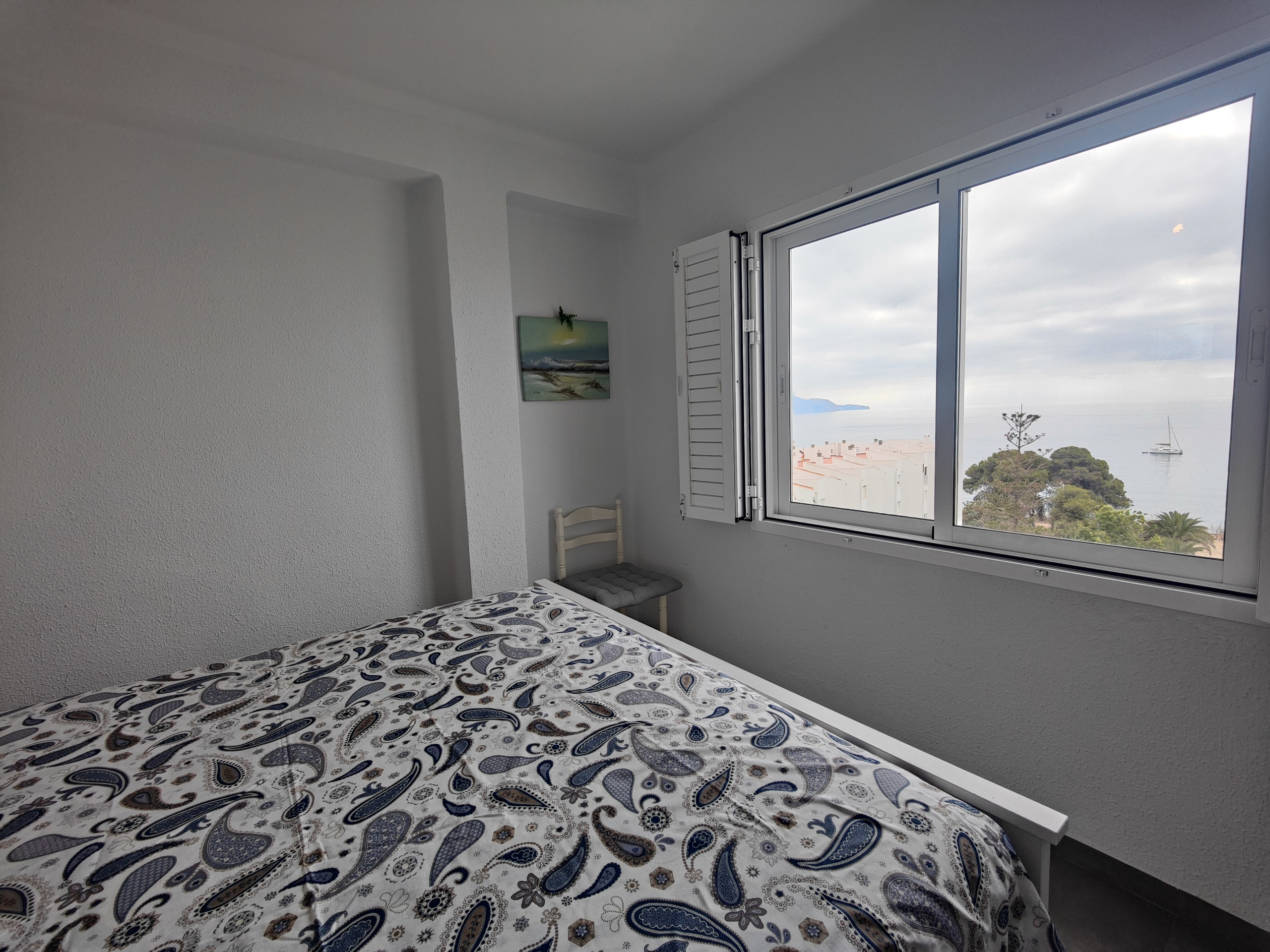 The property is situated on the 2nd floor (with lift) and comprises an open plan kitchen fully equipped with oven, microwave, electric hob and kitchen utensils, lounge-dining area with sofa bed and television, hot and cold air conditioning and a west facing terrace with table and chairs; shower room with washing machine and 1 bedroom with 2 single beds (joined by a topper), hot and cold air conditioning and fitted wardrobes. The apartment is very bright and has lovely sea views. The building has a nice communal garden area with swimming pool.
