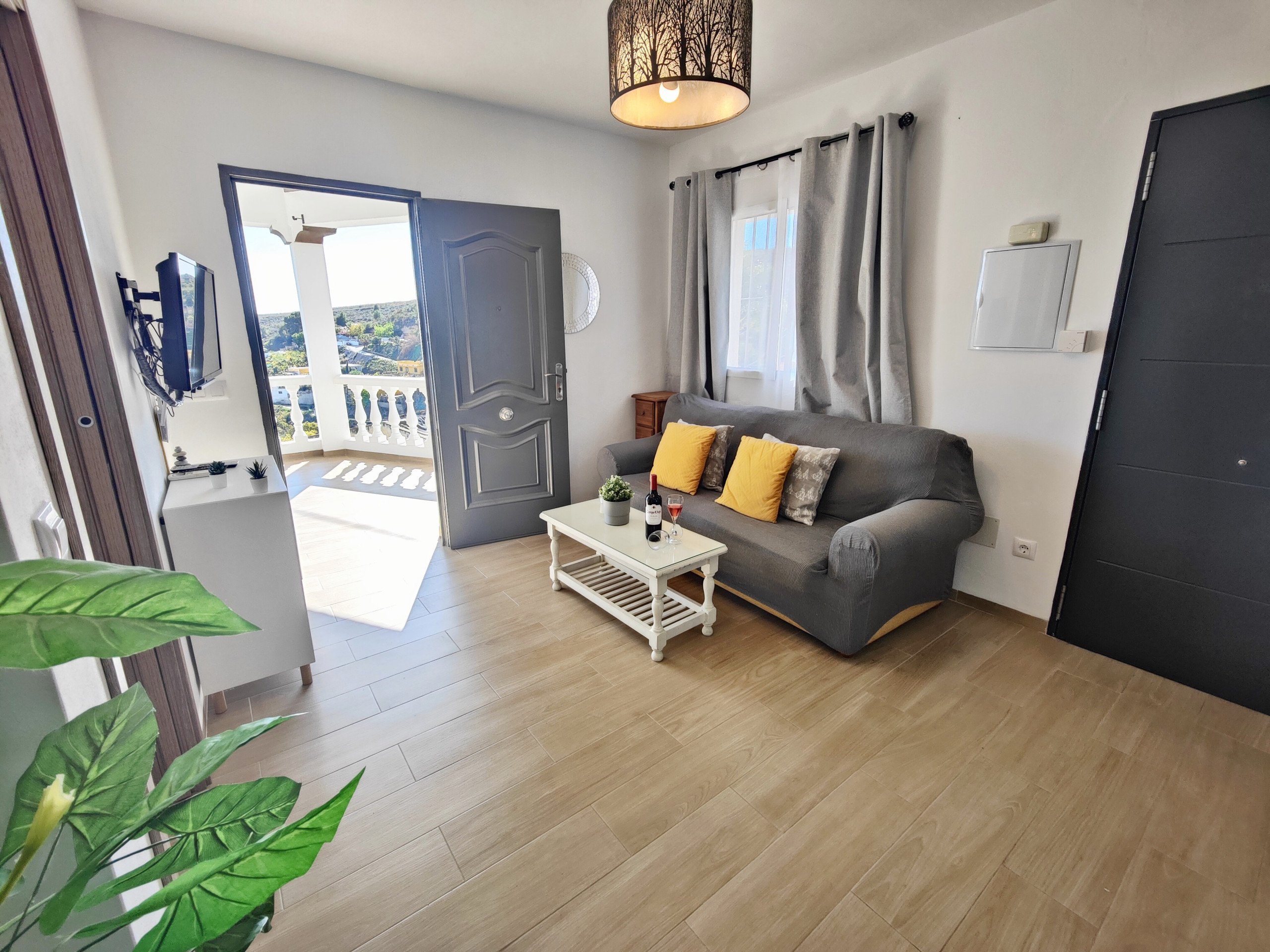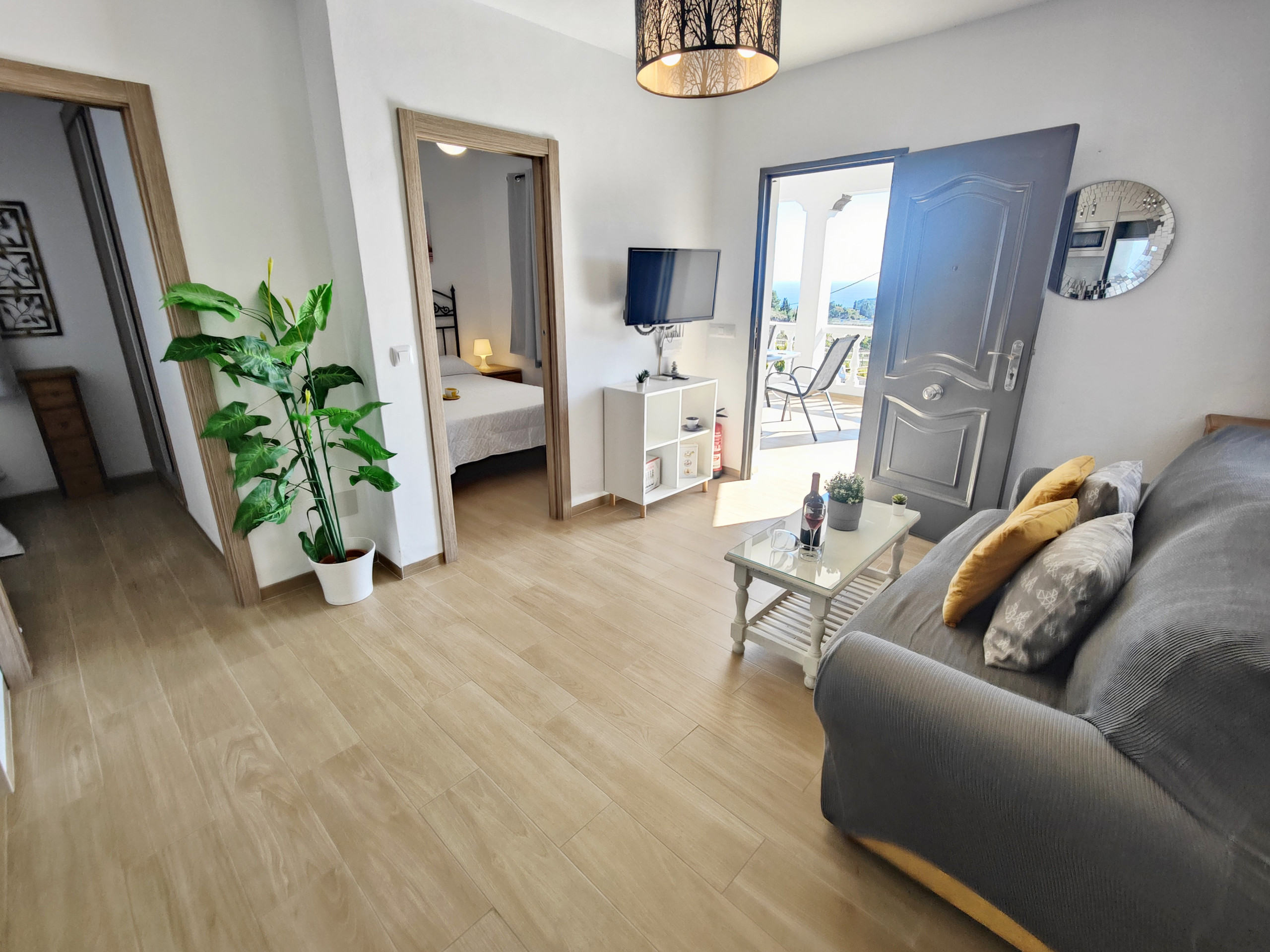 The house consists of a cosy living room with sofa, air conditioning, satellite TV and wifi internet. It has a modern open plan kitchen which is fully equipped with ceramic hob, electric oven, dishwasher, microwave and fridge. From the living room you can access a large porch with a roof with a dining table, chairs and beautiful views to the coast of Nerja.