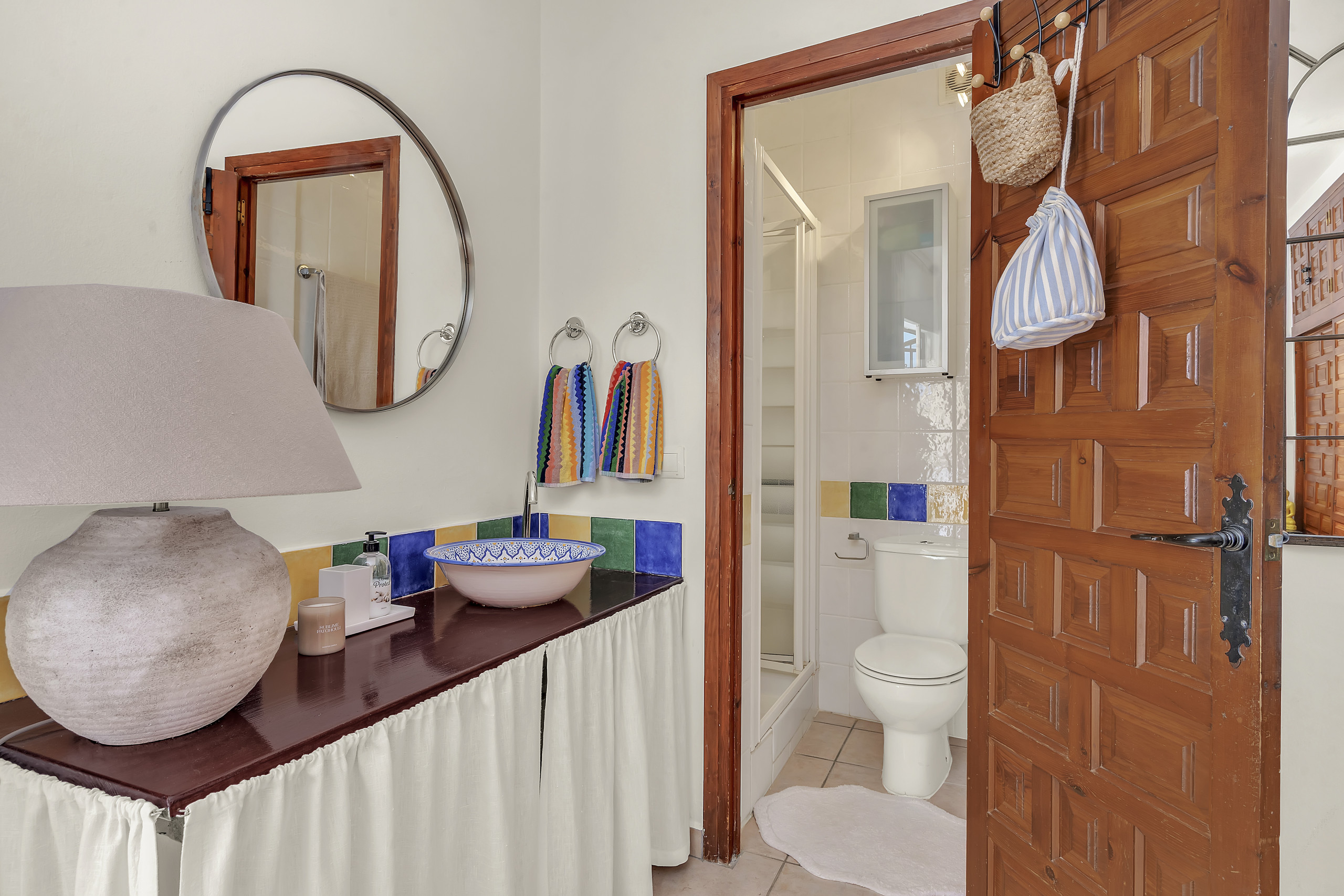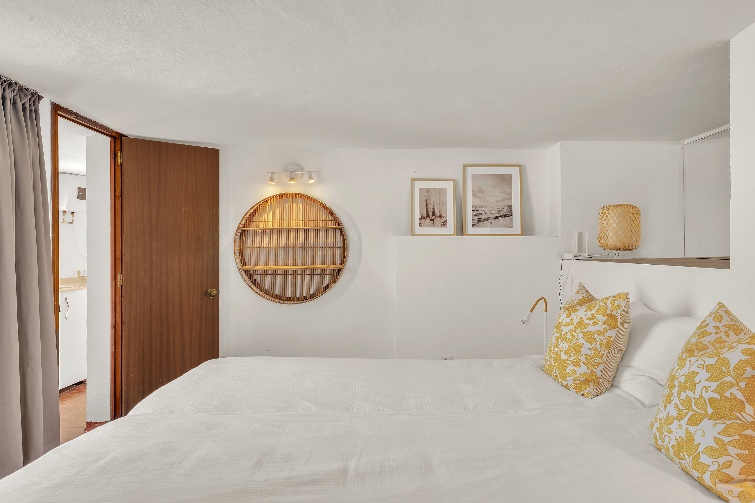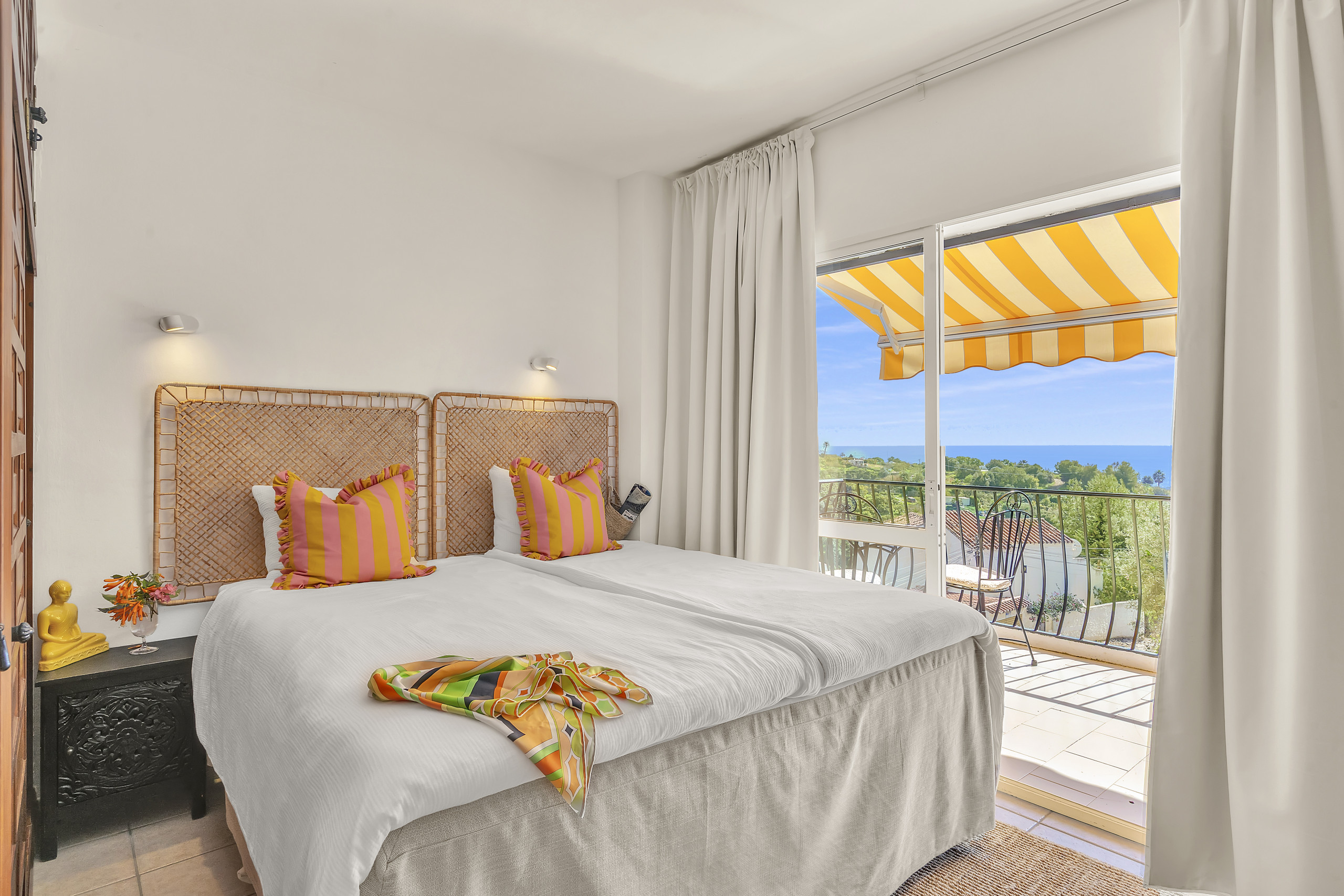 Upstairs is the master bedroom and a bathroom with shower. From the bedroom you have direct access to the balcony and the fantastic views over the sea.