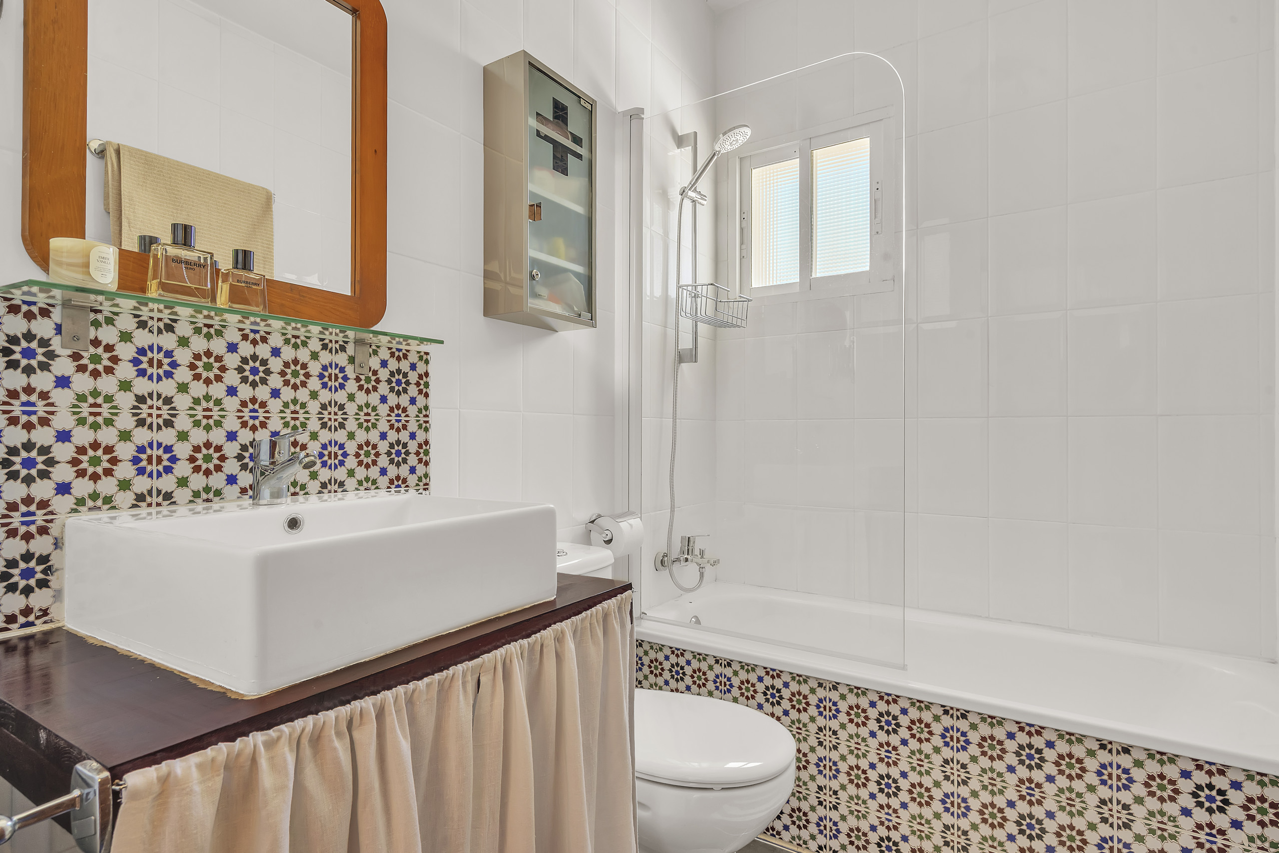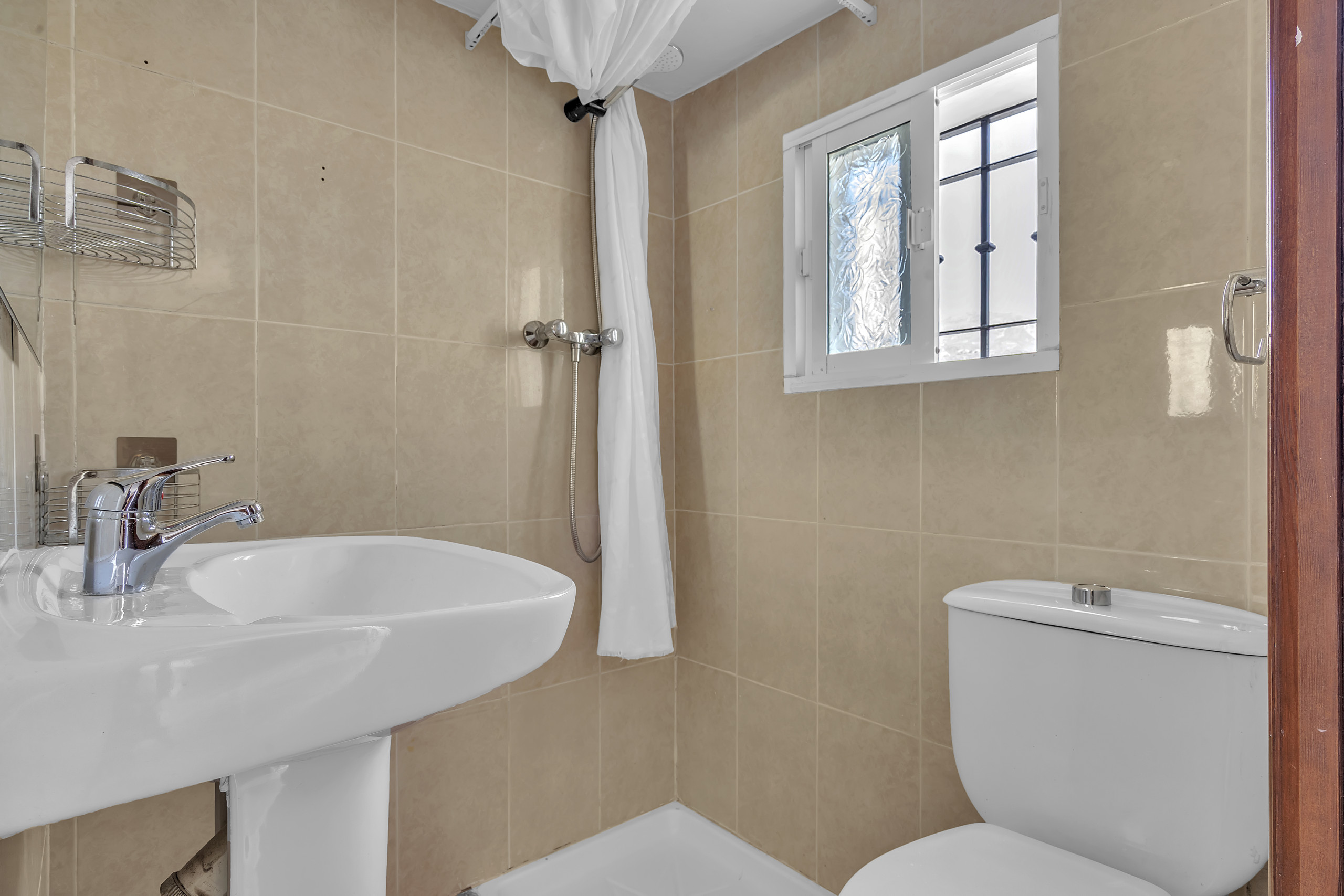 Downstairs are two bedrooms and a bathroom with a bathtub. One bedroom offers two single beds and the second bedroom offers a double bed with access to a lovely terrace over-looking the urbanisation.
