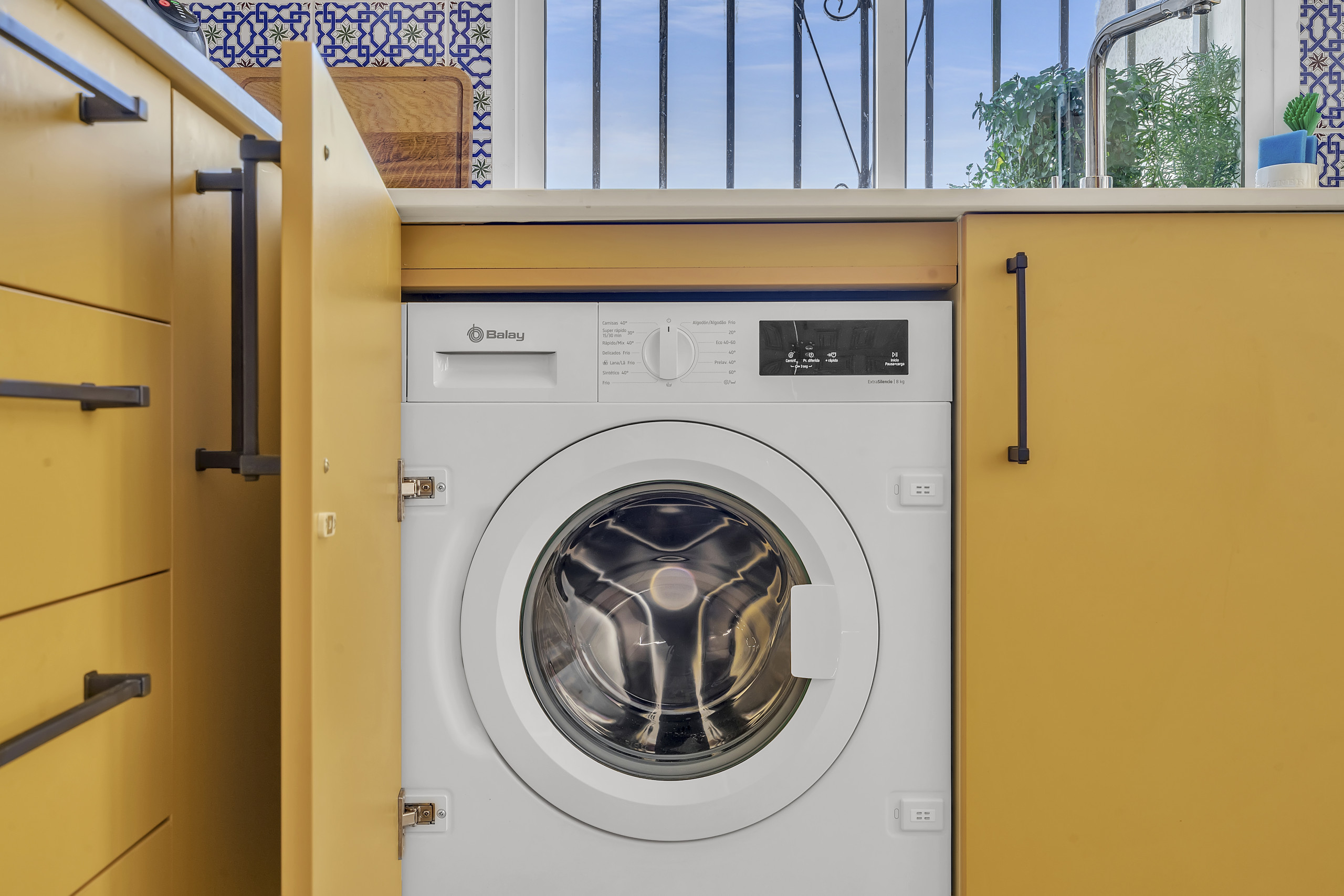 The outside area is made up of different spaces and areas, the first area we find is the lovely private swimming pool and a small outside kitchen with fridge freezer and sink. From there you can access a garden at the side of the house. On the other side of the pool area is the access to a private garage and utility room where the washing machine is stored.