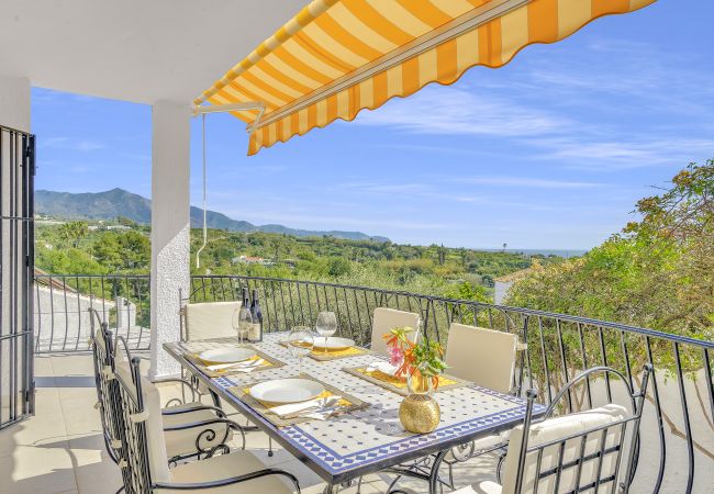 Casa del Aguila is an amazing villa in the Urbanización Ladera del Mar I, close to Nerja. The villa has a private garden, pool and bbq area. When entering the villa you will step right into the light living room with a view from the balcony over the ocean. The entrance floor also offers a modern and well-equipped kitchen with an ocean view.