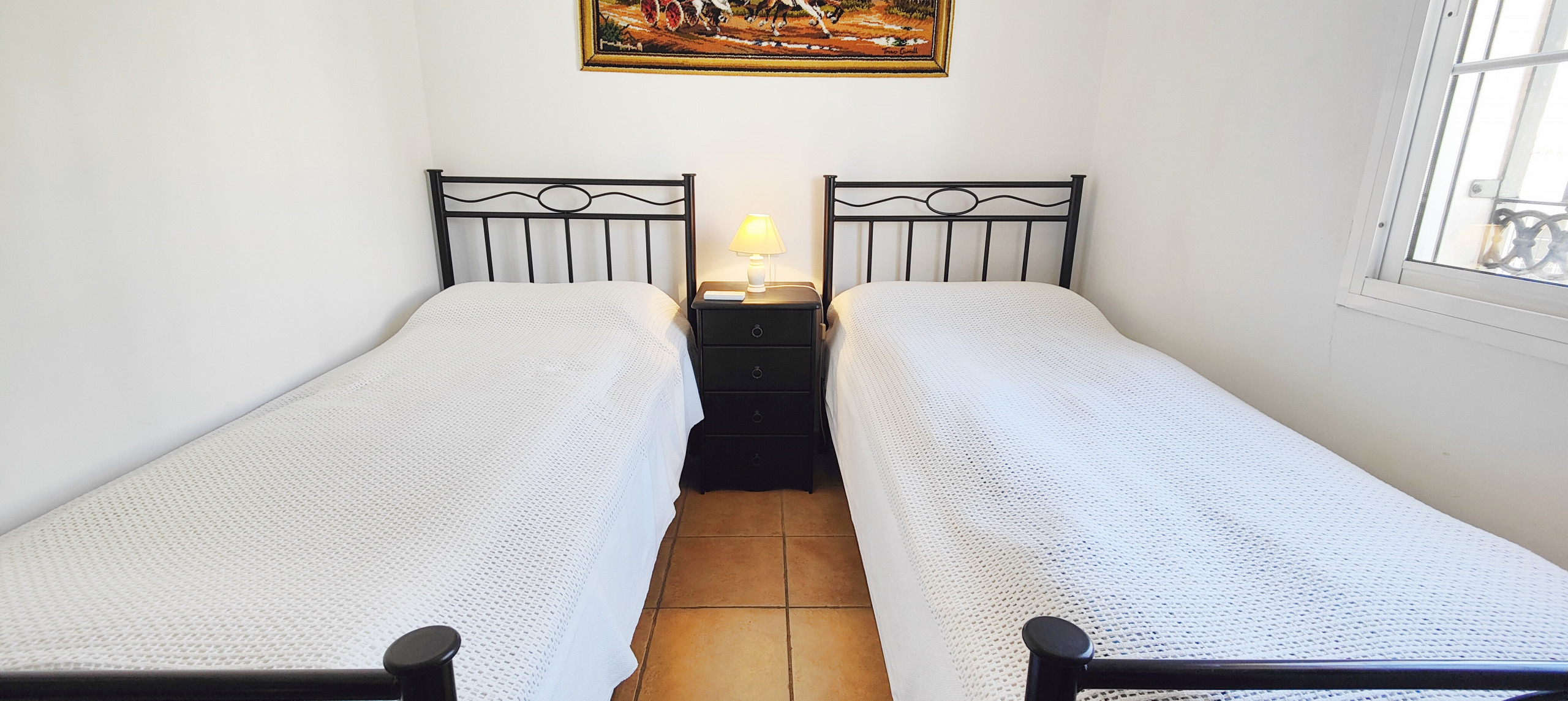 At the bottom of the pool area there are steps leading to a private studio / bedroom fitted with a double bed, storage units, AC with cold air, Wi-Fi and shower room. Note that this room is separate to the main villa and has its own entrance (only suitable for adults) .