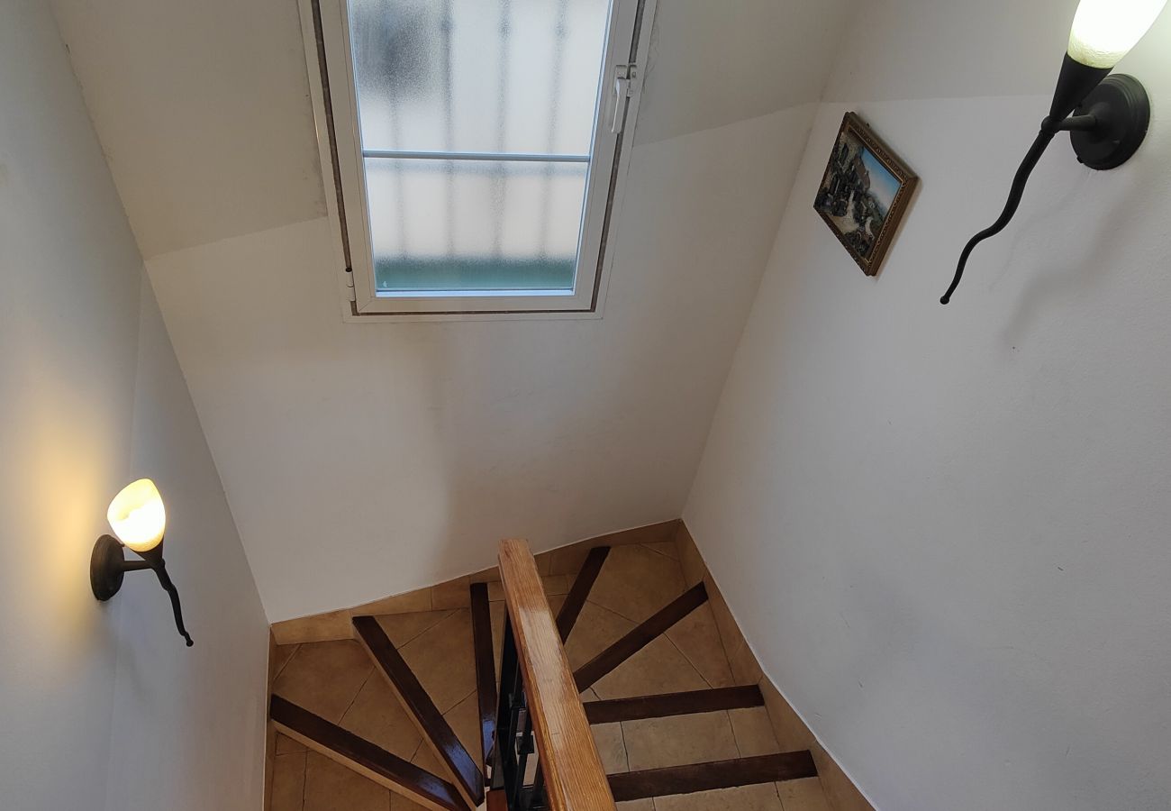 On entering there is a large gated private parking space for up to two cars, the living space is distributed over 2 floors and consists of the following: the ground floor has one small bedroom with a single bed and built in wardrobes, a guest toilet, a fully-fitted kitchen that is equipped with all the necessary utensils, crockery, fridge-freezer, electric oven and ceramic hob, toaster, coffee machine, microwave, washing machine and dishwasher.